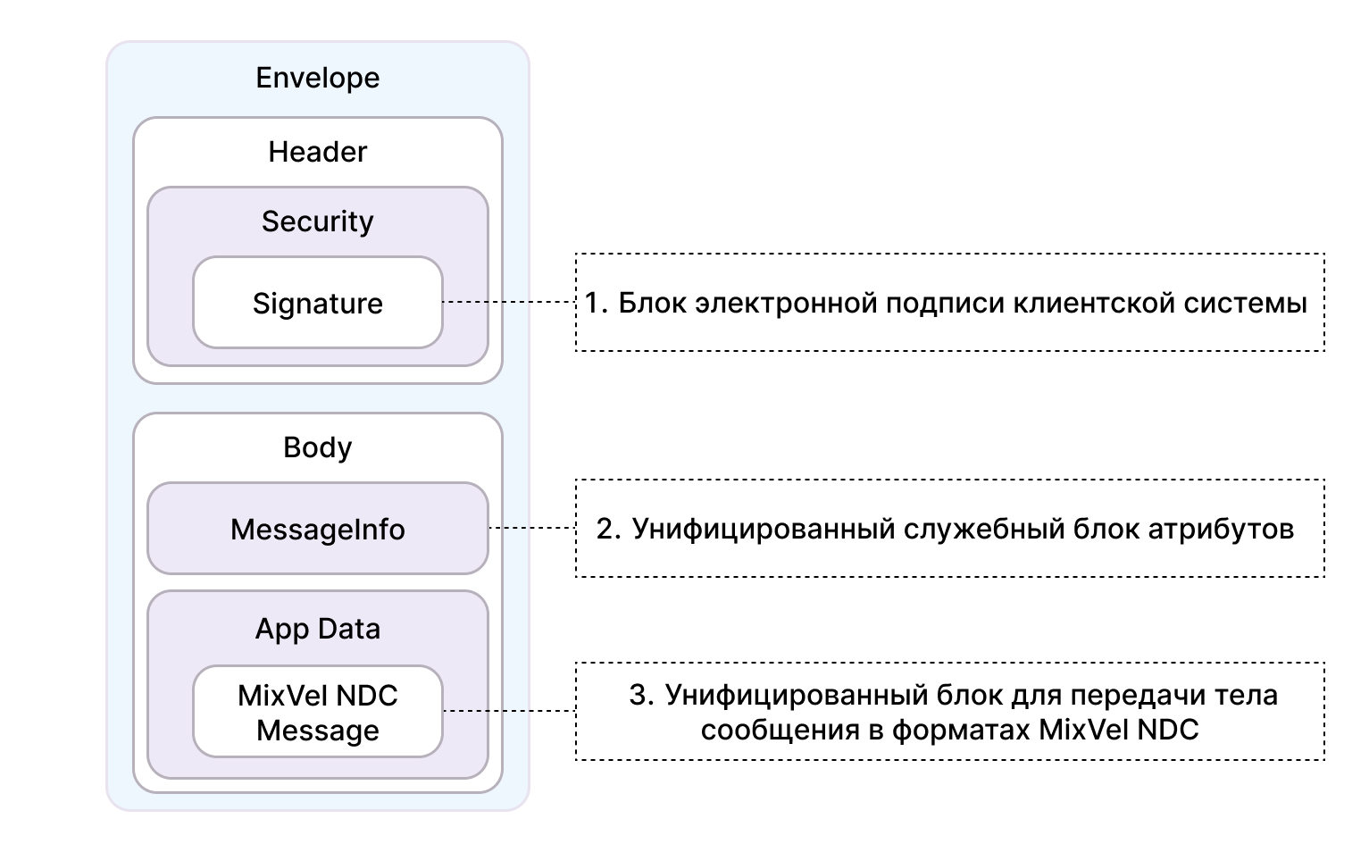 XSD-схема Mixvel_Envelop входит в комплект документации.