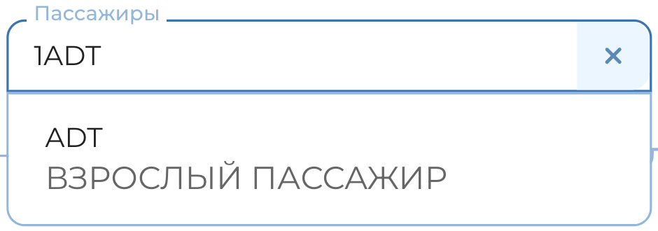 По умолчанию поле заполнено 1 взрослым пассажиром категории ADT.
