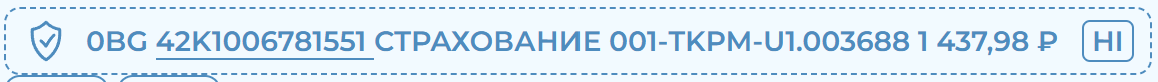 После оплаты услуг страхования на плашке с услугой будет отображен номер страхового полиса и номер ЭМД (для сеанса ТКП).