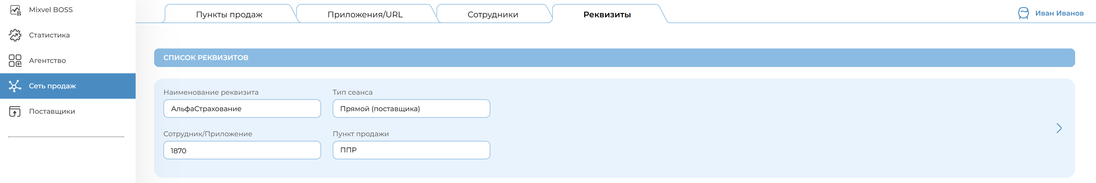 После добавления реквизита (кнопка «Добавить реквизиты»), он отображается в разделе «Реквизиты» (Рисунок 9).